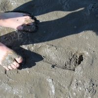 Lager errichtet, nun aber auf zum Strand und rein ins Watt! Wäre nicht gerade Pfingstsonntag gewesen hätte man vielleicht noch mehr Spaß auf dem schlammigen Untergrund empfunden, doch wenn tausende Menschen mit ihren Vierbeinern (Hund und Pferd) diesen Ort belagern kann das mitunter schon etwas nervend sein. Dennoch, den Kindern nimmt der Andrang nicht den Spass diesen Weg zu beschreiten und auch der Dackel weiss vor Freude und Artgenossenvielfalt nicht wohin mit seiner Freude.