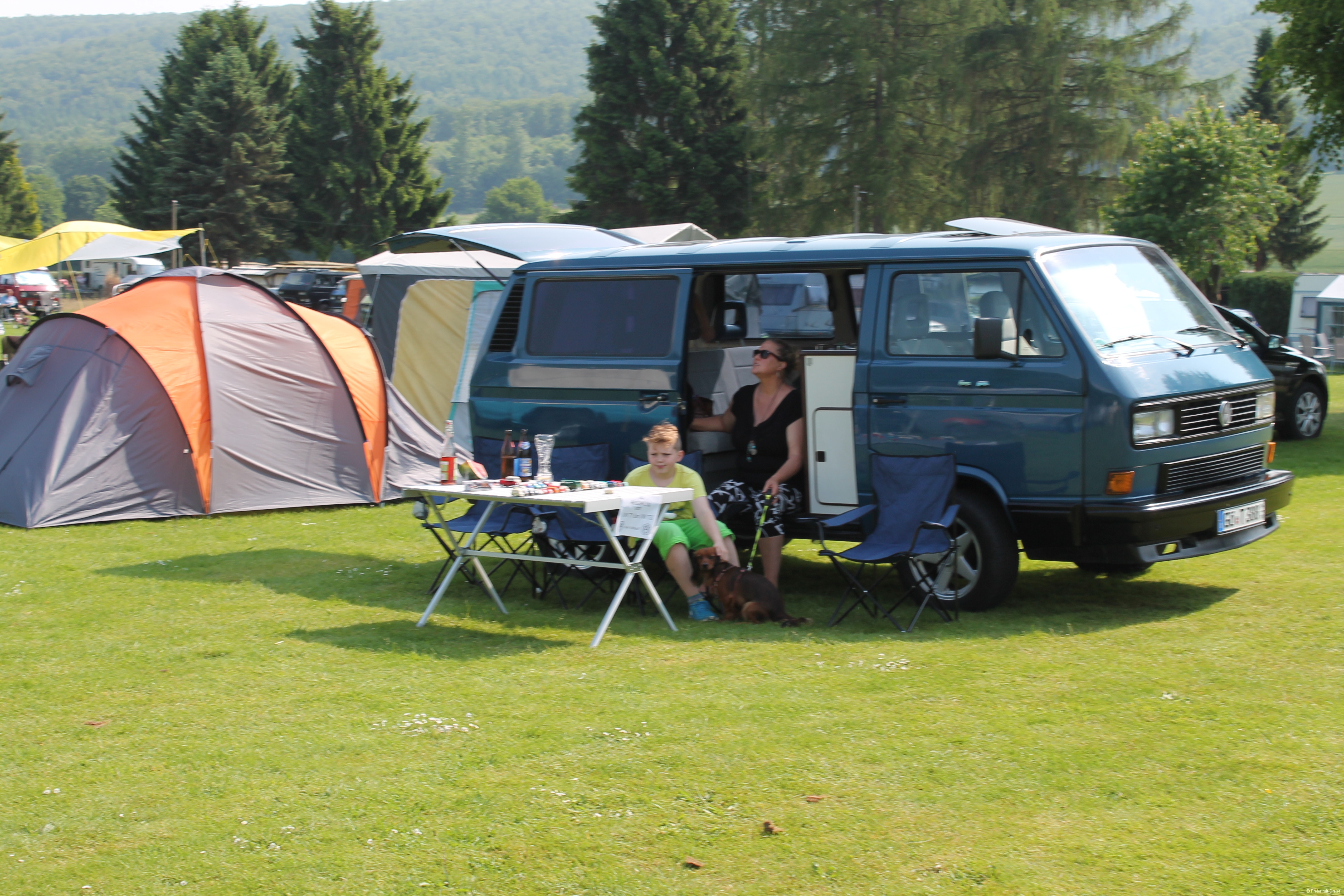Mit nur einem Tag Zeit im Marschgepäck ging es bei schweißtreibenden Temperaturen erneut in Richtung Weser. Der uns bestens bekannte Strom beherbergt an seinem Ufer nicht nur seltene Exemplare aus der Tierwelt sondern auch einmal im Jahr eine Ansammlung von ebenso rar gewordenen Gefährten aus der VW-Bus-Szene. In der Nähe von Oberweser, auf dem Campingplatz Weißehütte, mitten in einzigartiger Landschaft lud der Organisator Michael Thieme zum mittlerweile sechsten Mal zum Treffen. Rund 120 Busse aller Generationen und ihre Fahrer verbrachten ein von Sonne durchflutetes Wochenende direkt am Weser-Strom.