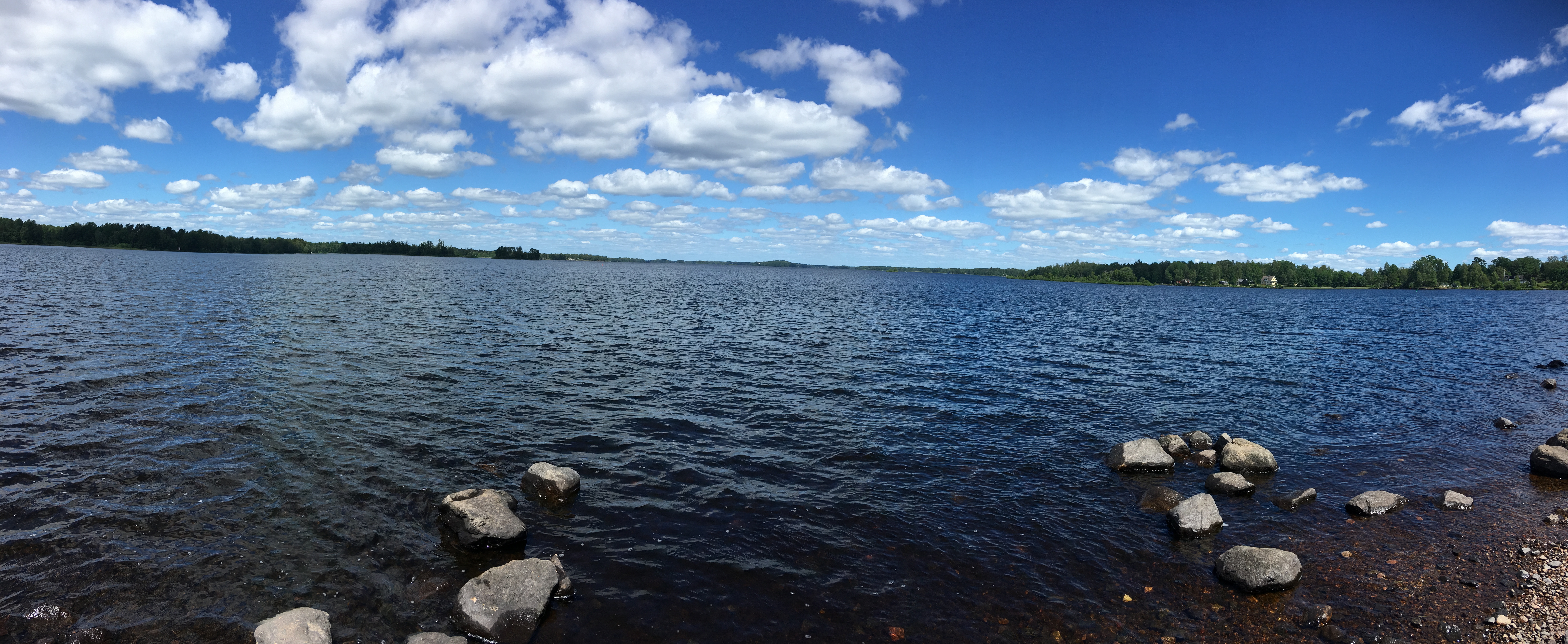 hier nachempfunden scheint. Wir sind glücklich auf diesem Fleckchen Erde, beobachten die herausfahrenden Angler, halten Ida ab den Hang herunterzukullern und lauschen dem Gelächter der Jugendlichen, die sich im Whirlpool auf dem Steg gegenüber und danach in der Sauna aalen. Und obwohl heute der längste Tag des Jahres ist gehen wir wie immer zeitig ins Bett. All die frische Luft macht müde und Schlaf tut auch einfach mal gut. Um ca. 03:00 Uhr treibt meine Blase mich aus dem Bett. Zum Glück, denn die Sonne will in dieser Nacht nicht so ganz untergehen. Zwar sind wir noch relativ weit im Süden, aber der Sonnenuntergang wird auch hier quasi zum Sonnenaufgang und man spürt, dass an diesem Ort andere Kräfte wirken. Ein herrliches Land.