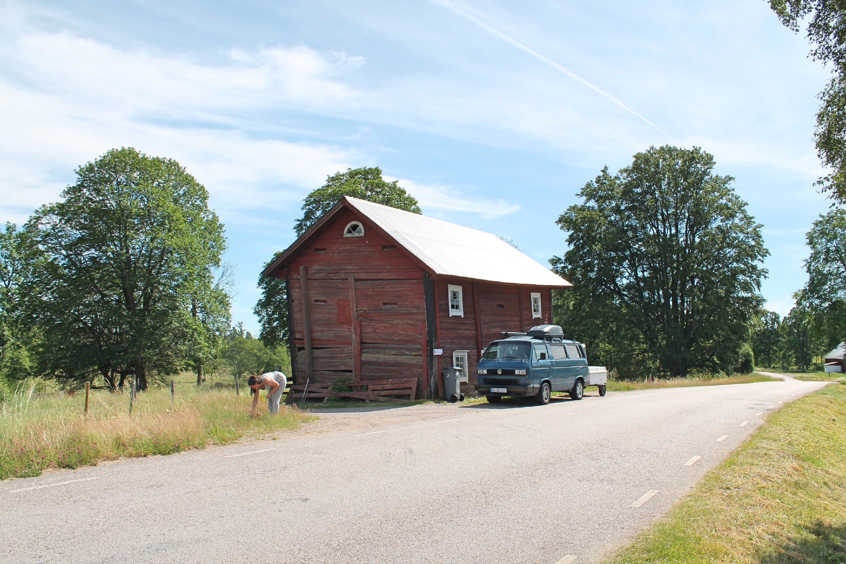 harmlosen Erzählungen, die sehr an deutsche Verhältnisse erinnern. Kaum vernommen wird Bine von einer Mücke ins Visier genommen. Eher ungewöhnlich hier an der Küste denken wir, reiben uns mit Anti-Brumm ein und beobachten die eben eingetroffene Familie aus Westfalen neben uns. Rainer und Iris sind mit ihrem Sohn im geliehen Wohnmobil unterwegs. Die Augen von Rainer, einem Angestellten in der Automobilzulieferer-Branche, sind voller stolz als er uns drei in dem kleineren T3 ausmacht. Dieses Überlegenheitsgefühl kommt bei seinem 4-jährigem Spross hingegen nicht zum Tragen. Jonas macht was er will, hechtet von einer Ecke zur anderen, während sein Vater ihm folgt und versucht zu erklären warum das was er da gerade tut nicht so gut sei. Ein echtes Schauspiel und irgendwie auch faszinierend wie Karma in Echtzeit arbeiten kann. Der erste Tag in Schweden geht für uns recht früh zu Ende. Wir sind müde an diesem 20. Juni und gespannt wo wir Morgen Mittsommer feiern werden.