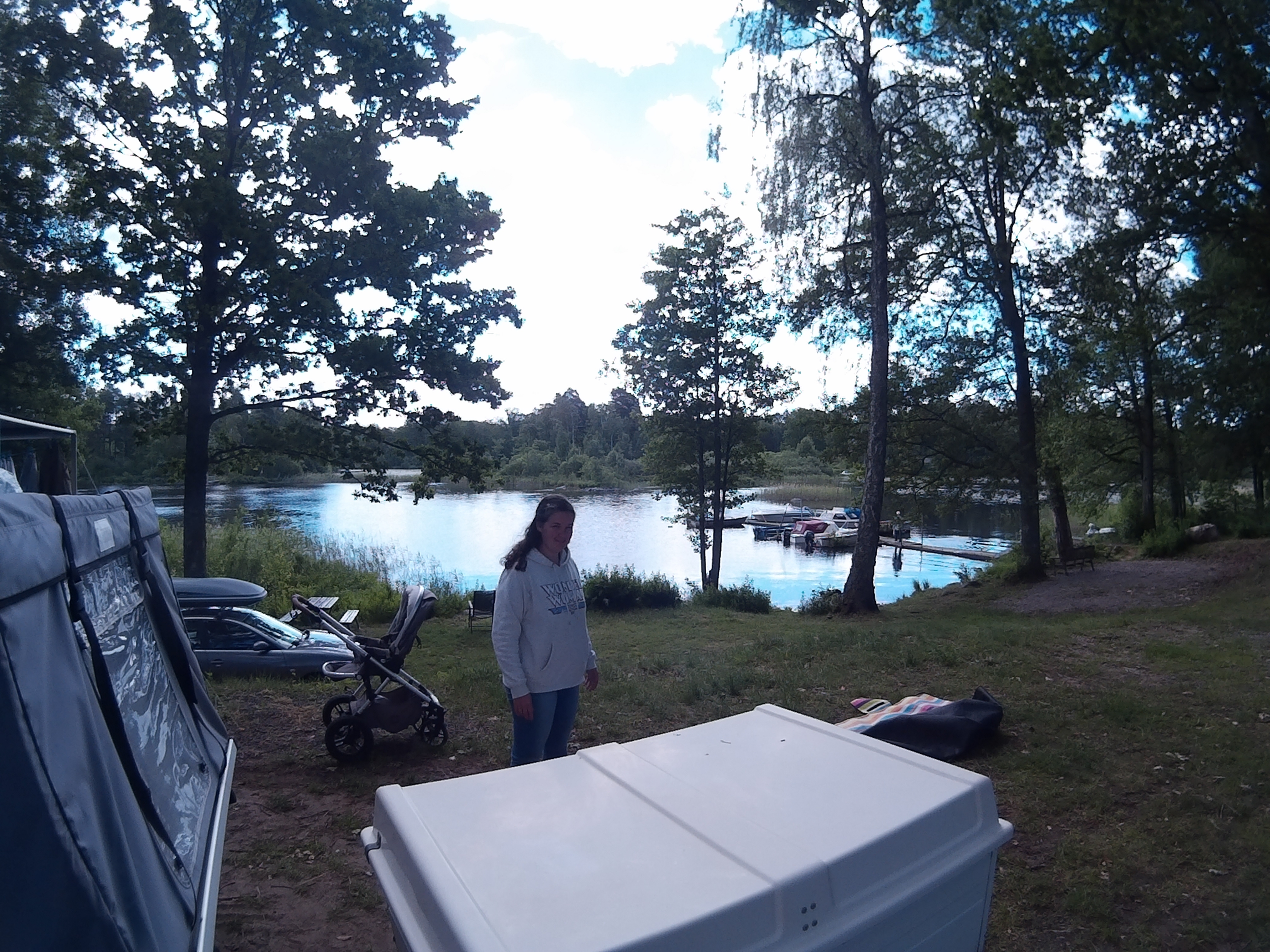 So dauert es auch nicht lang bis wir den Zwischenstop erreicht haben. Der Platz gehört wieder einmal zur FirstCamp-Kette und überzeugt sofort wie sein Vorgänger auf Rømø durch Modernität und Sauberkeit. Man merkt aber auch gleich, dass man sich hier in einer Art Durchgangslager befindet – einem Sprungbrett für viele Reisende die hier ins Abenteuer starten oder es auf einer der Auto-Fähren im Hafen beenden. In der Rezeption spricht man ausschließlich Englisch, ein Umstand der uns auch schon in Nyborg eine Wiederbelebung der vor 30 Jahren erlernten und doch eher selten angewandten Sprache abverlangt hat. Im angrenzenden Camping-Shop lachen uns die ersten echte schwedischen Zimtschnecken an. Ohne das nötige Bargeld sind wir zunächst skeptisch was den Erwerb dieser niedrig bepreisten Köstlichkeit anbelangt werden aber von dem Kassierer schon lächelnd mit dem Kartenlesegerät erwartet.