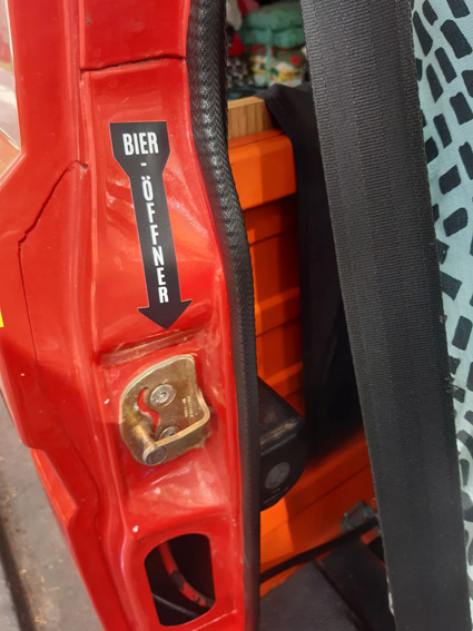 Einen Flaschen-Öffner hat man im T3 ja ab Werk immer mit dabei. Doch weiß das auch die Meute, die sich um Deinen Bus zum Getränkekonsum versammelt? Siehste! Hier der dezente Hinweis in Stickerform. Prost!